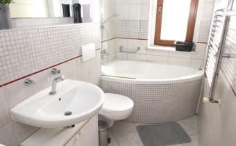 - łazienka z oknem, toaletą i wanną,