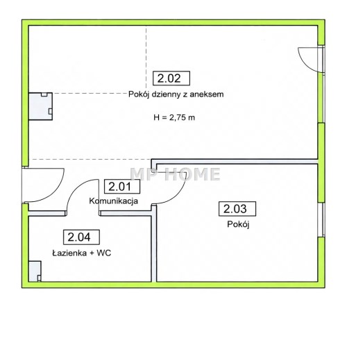 - salon z aneksem kuchennym z wyjściem na taras,