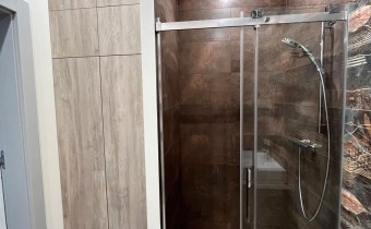 - W łazience ceramika Roca, kabina prysznicowa i armatura Hansgrohe;