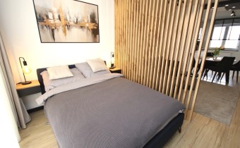 - salon z wyjściem na balkon (w części salonu wydzielona dodatkowa sypialnia),