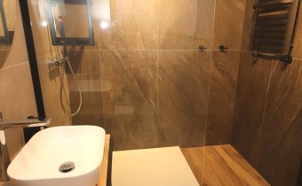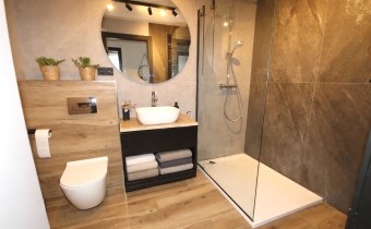 - łazienka z wc i prysznicem,